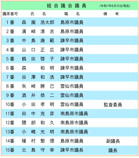 県央県南広域環境組合議会議員は、構成市の議会の議員の中から選出されています。